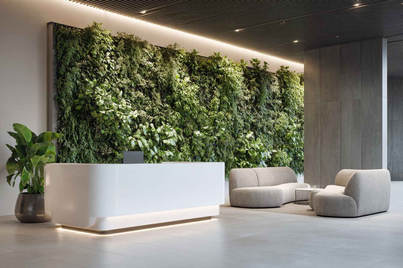 - Экономия площади. Зелёные стены используют вертикальное пространство, не перегружая помещение.