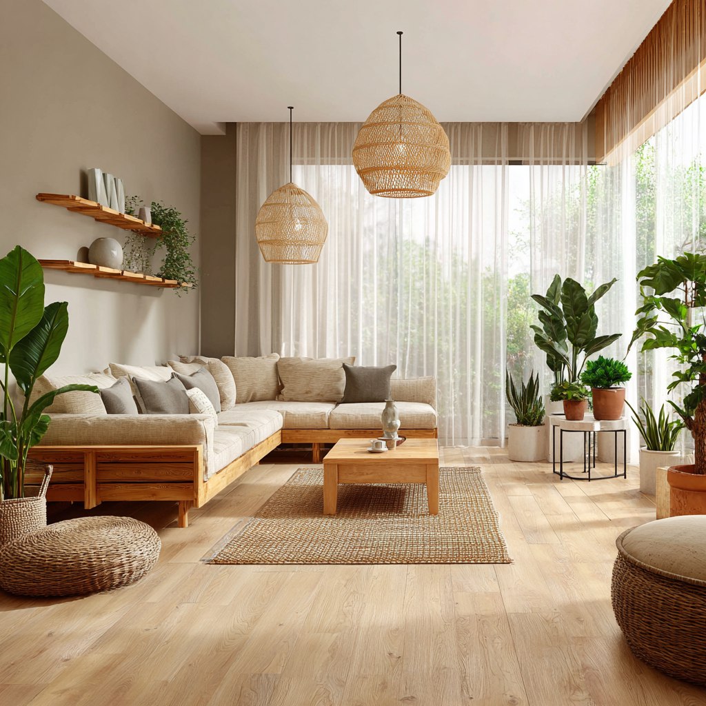 - Крупные напольные экземпляры (фикус, ховея, драцена) создают «зелёные островки» и работают как живые скульптуры.