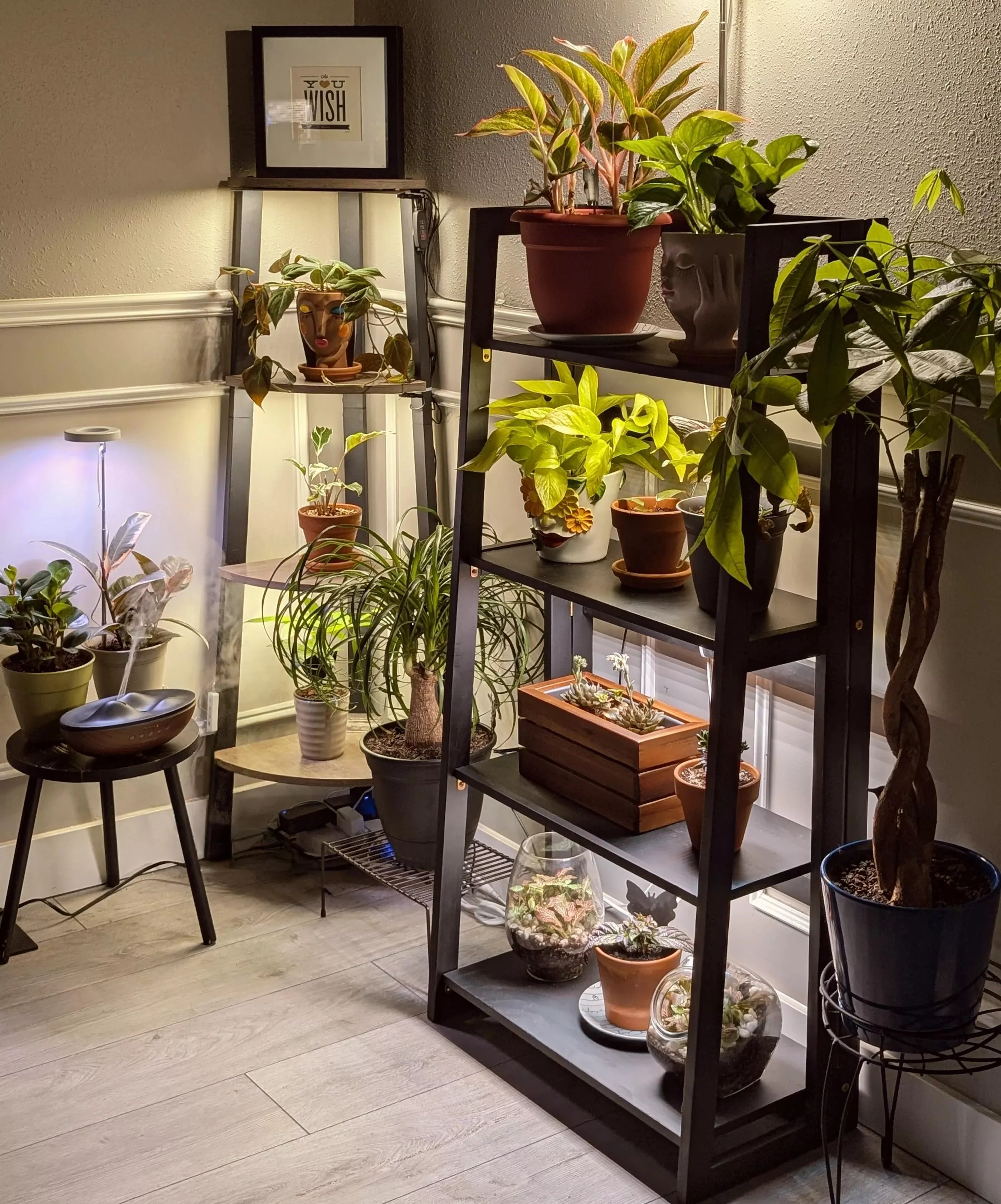 Фитосветильники представлены в разных формах, что значительно упрощает их интеграцию в интерьер. Кроме стандартных лампочек, существуют решения в виде светодиодных лент или прожекторов. Фитоленты удобны для размещения в компактных пространствах, таких как узкие ниши или на полках, где можно просто прикрепить ленту к верхней части.
