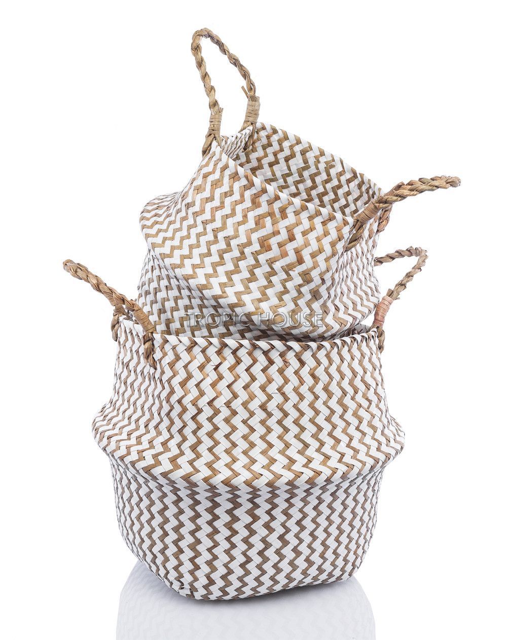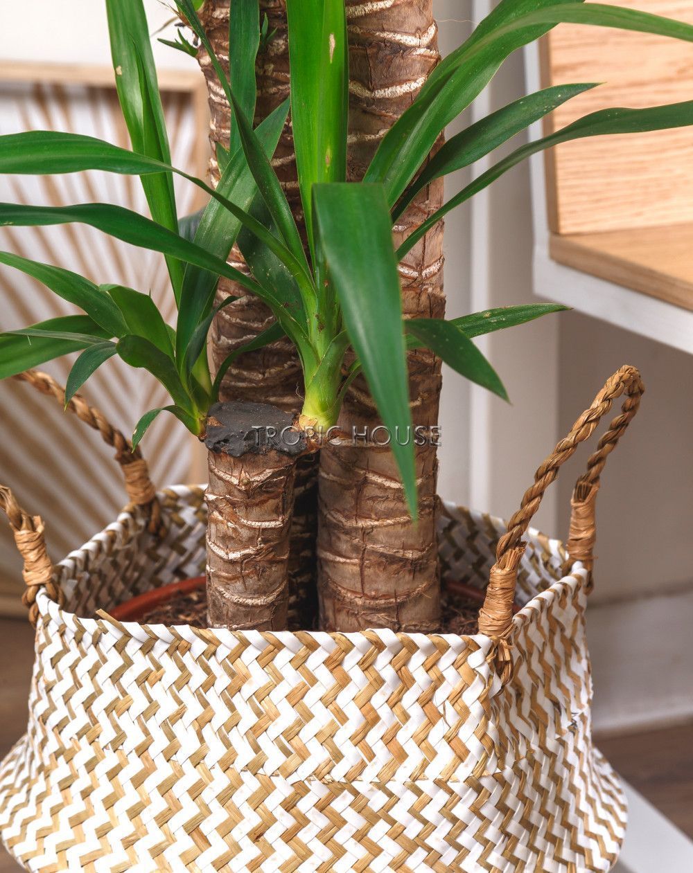 Корзина свободно трансформируется, можно сделать ниже, сложив корзину вдвое и убрав ручки внутрь. Корзины очень удобны и многофункциональны в использовании, поэтому всё чаще встречаются в жилых интерьерах, а натуральные материалы добавят Вашему дому природные элементы.
