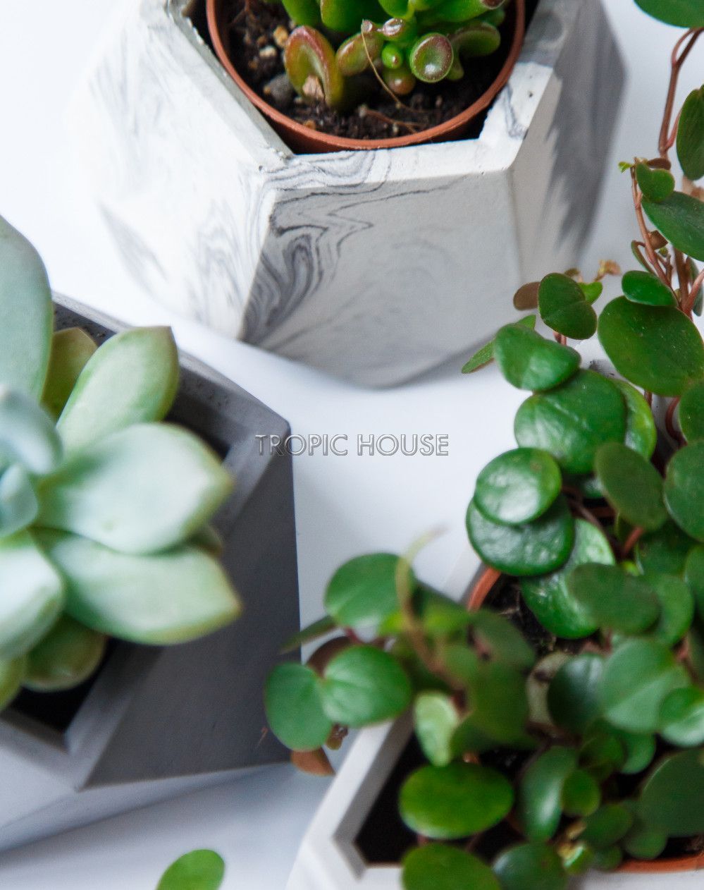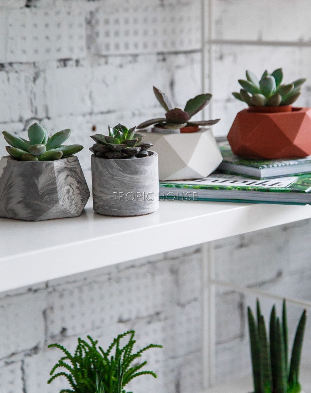 Кашпо сделаны в монохромных естественных цветах, на их фоне растения смотрятся особенно свежо и ярко.