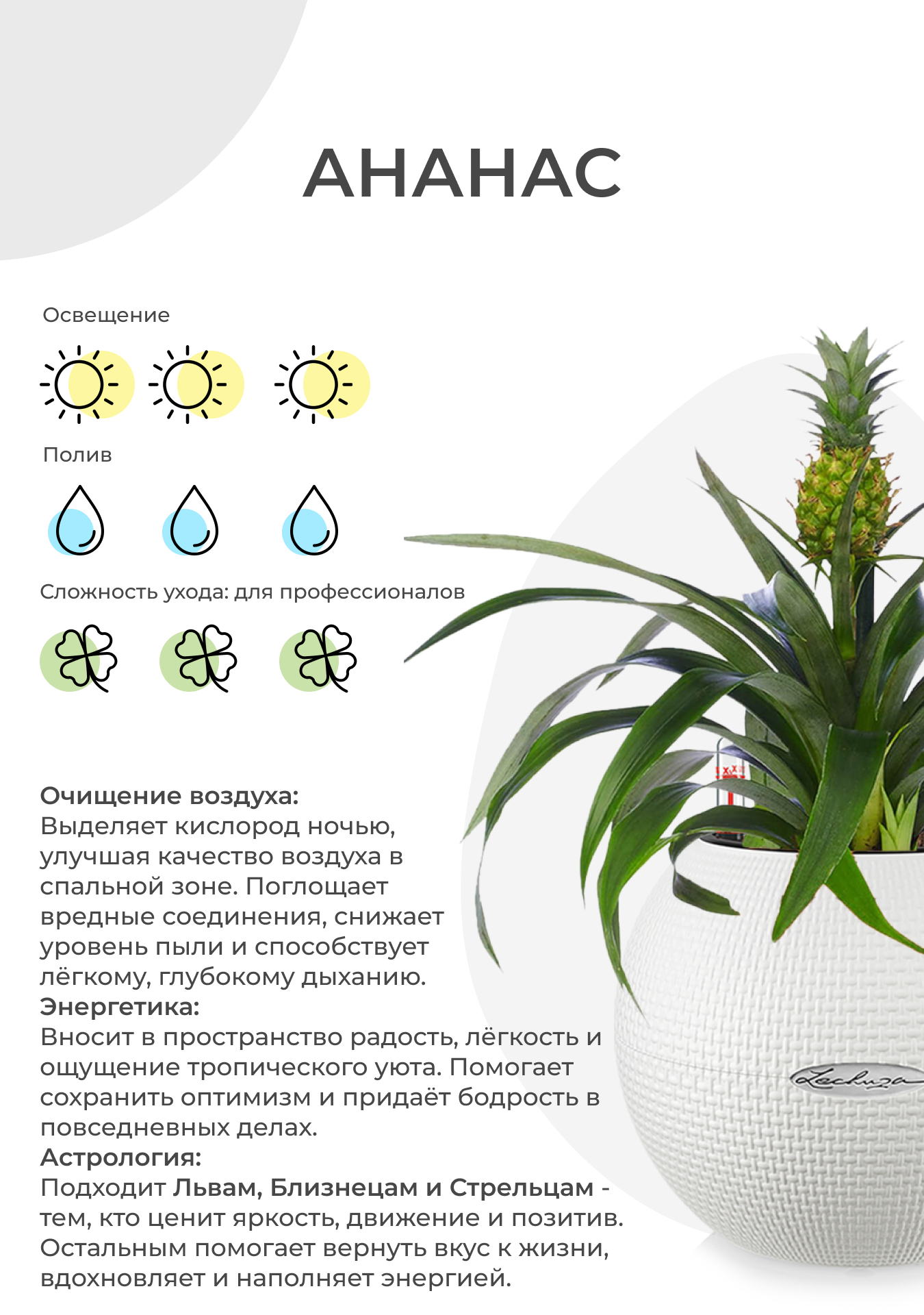| Памятка по уходу | Ананас |