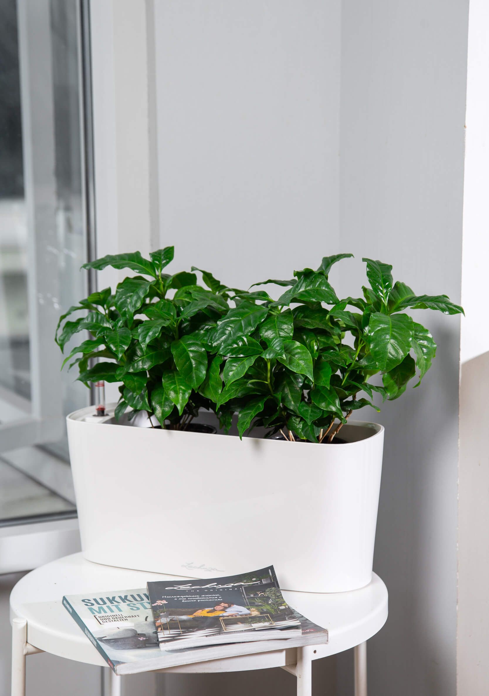 Бодрого дня! Вы уже знакомы со мной по ароматному напитку из моих зерен - Кофе, а теперь вы сможете полюбоваться моими сочными глянцевыми листьями. В 18 веке за черенками моих предков велась настоящая охота. Один французский капитан корабля похитил черенок деревца у голландцев, спас его от пиратов и довез до французской земли, где он позже зацвел. Обеспечьте мне светлое место без прямых солнечных лучей, регулярные опрыскивания, и я привнесу в Ваш дом атмосферу уюта и гармонии!