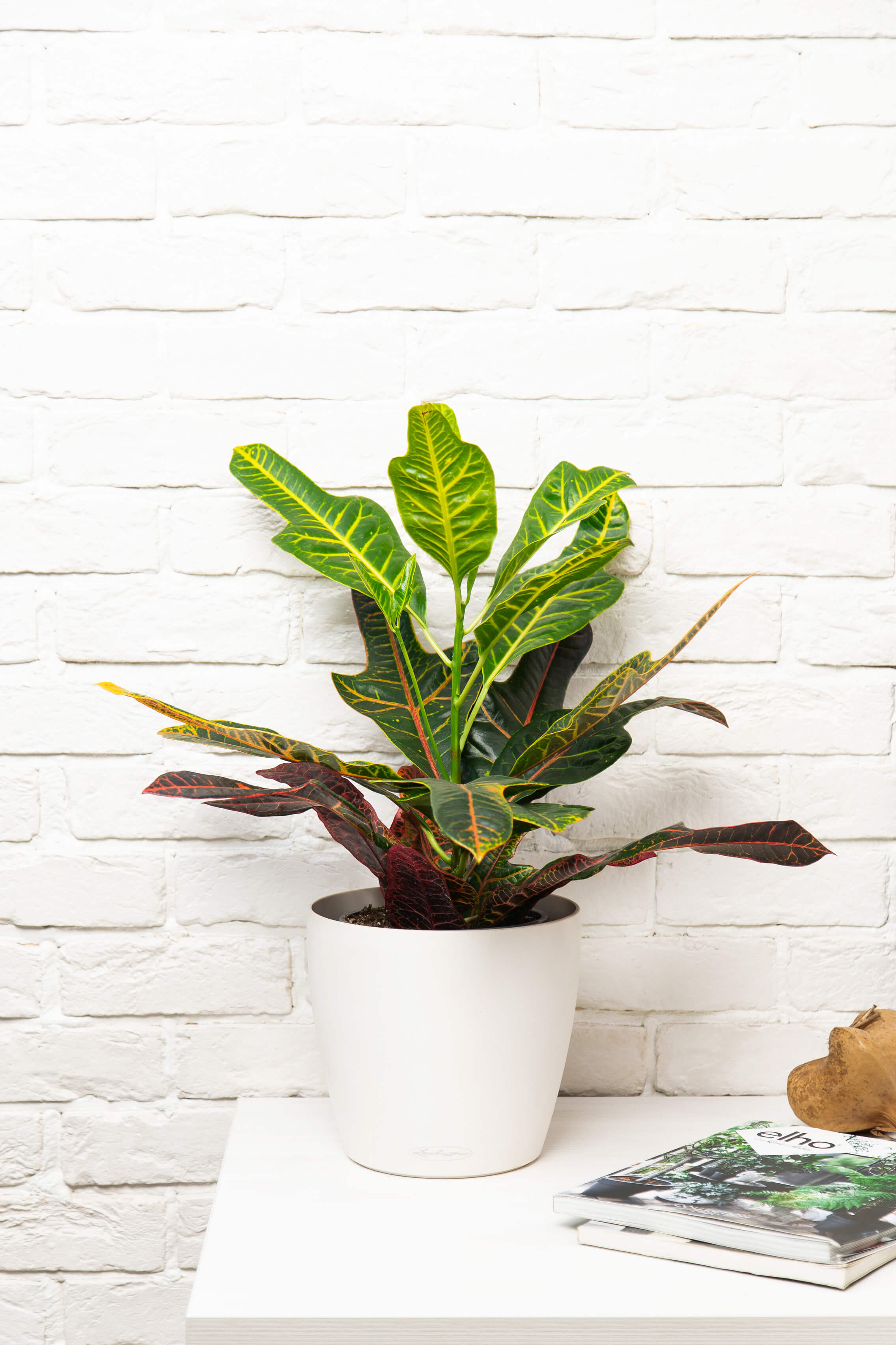 Алоха! Давайте знакомится, я Кротон или Кодиеум. На своей родине в тропических лесах Азии и Океании я привык к высокой влажности и обилию солнечного света. Все это позволило мне приобрести волшебные и неповторимые формы листьев. Разнообразие их форм и цветов (от красного и оранжевого до всех оттенков зеленого) - то, за что меня ценят. Поэтому мне очень важно хорошее освещение, чтобы сохранить уникальный окрас моих листьев. Своего владельца я наделяю даром красноречия, добавляю ему решимости.