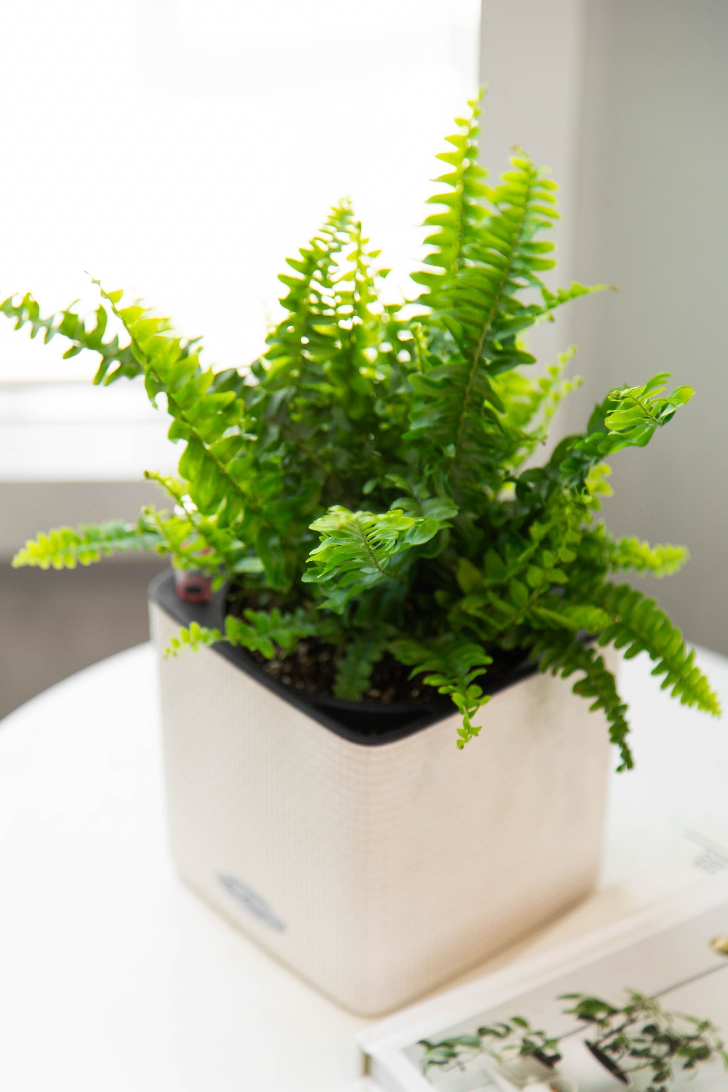 В центре внимания — Нефролепис, также известный как "папоротник живой". Этот папоротник является одним из самых популярных комнатных растений и идеально подходит для украшения большинства интерьеров, благодаря своей воздушной листве и традиционной форме, любимой во все времена. Папоротник отлично освежает внешний вид пространства и является символом надежды и оптимизма. Уход за папоротником включает в себя: