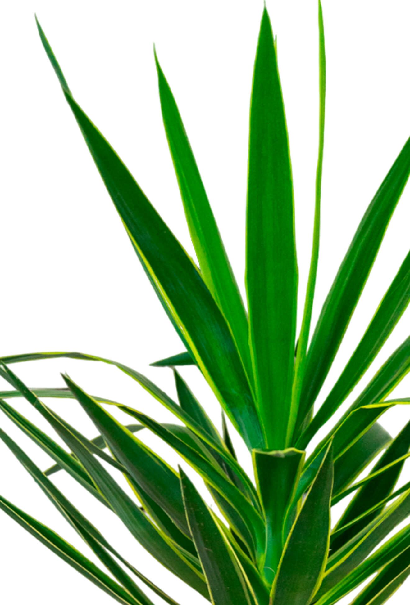 Юкка – растение полупустынных засушливых районов США и Мексики, где на песчаных каменистых почвах мозаично разбросаны устойчивые к засухе представители флоры. Внешне похожая на пальму, она имеет толстый одревесневший ствол и розетку сочных зеленых листьев на макушке, привыкла жить под знойным солнцем и стойко переносить недостаток воды на протяжении долгого времени. В любом интерьере такой внешний облик растения будет напоминать о летней жаре, приключениях и погружать в атмосферу старых фильмов-вестернов.