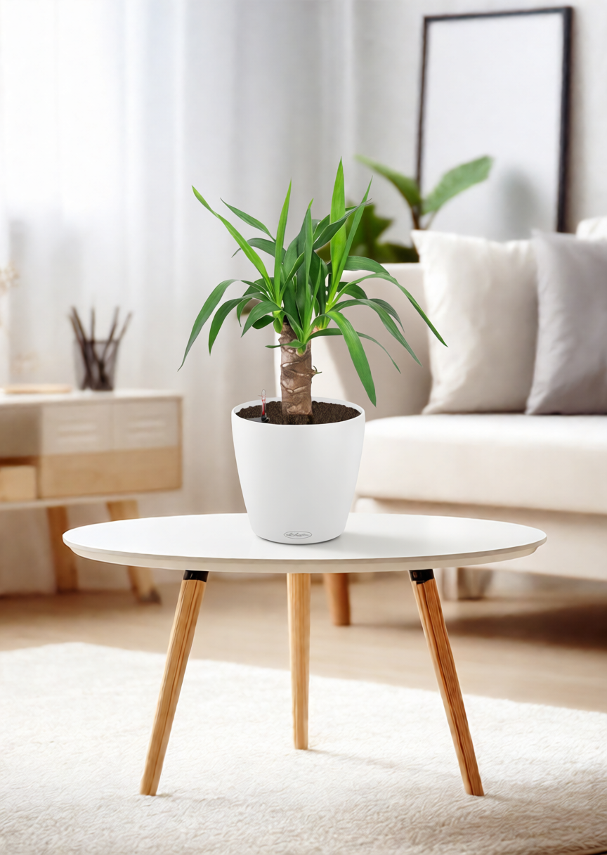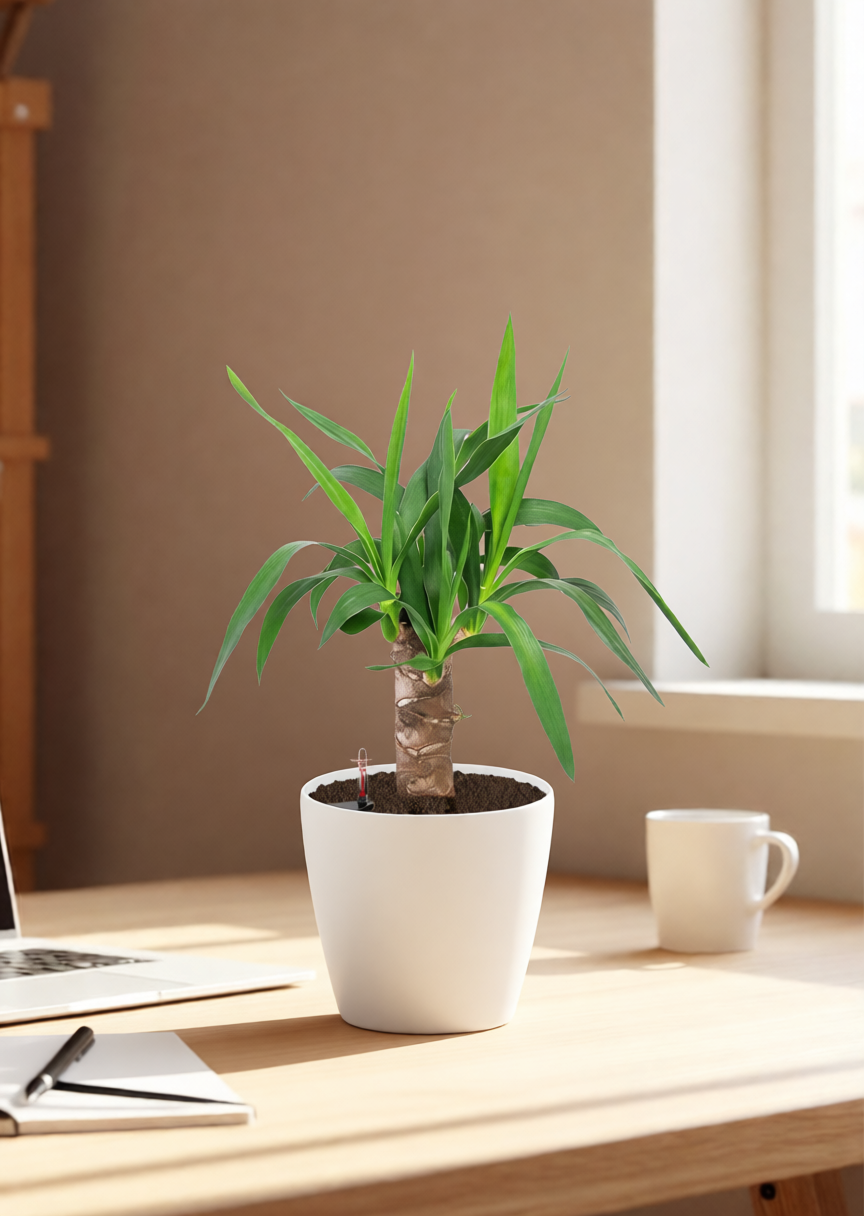 Температурный режим: Юкка предпочитает умеренную температуру в пределах +18...+25°C. Летом растение хорошо переносит повышение температуры до +30°C, но зимой важно избегать переохлаждения ниже +15°C;