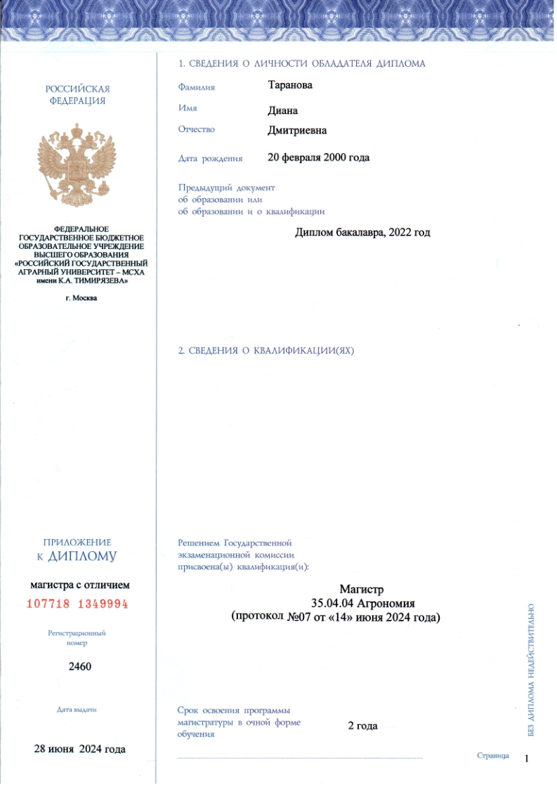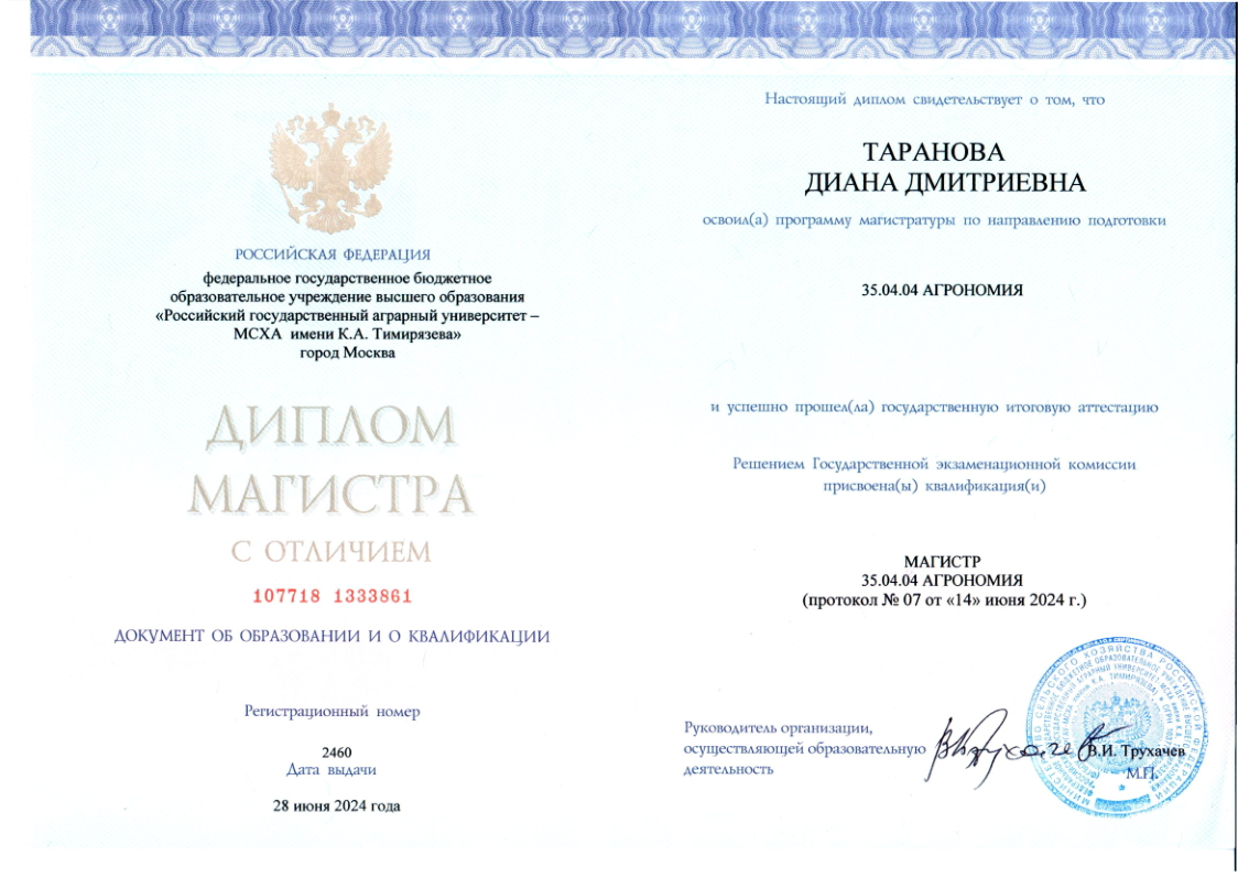 Закончила Тимирязевскую академию по профилю Генетика, селекция и семеноводство.
